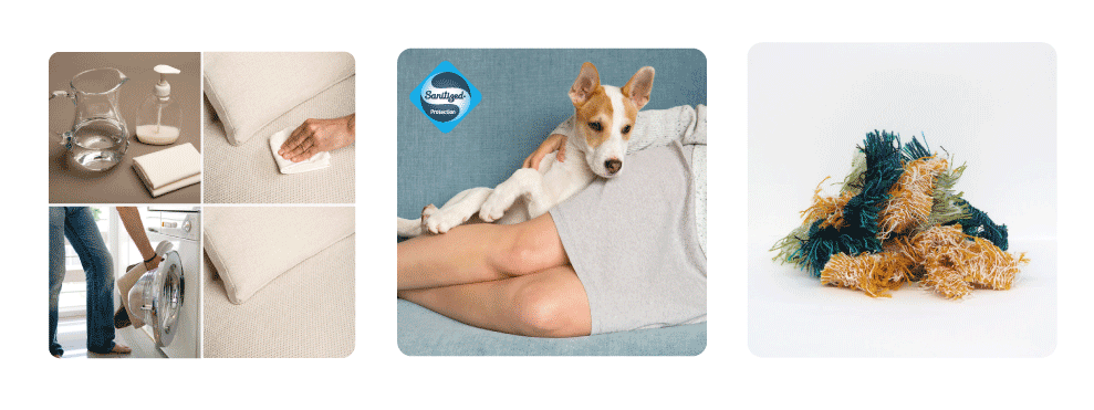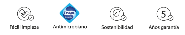 Efficiency fabrics are protected against bacteria, mites and odors by Sanitized®, Swiss patented technology.